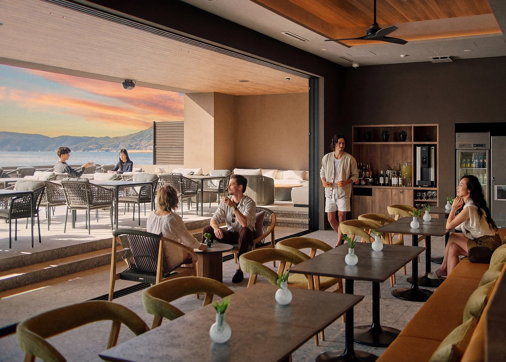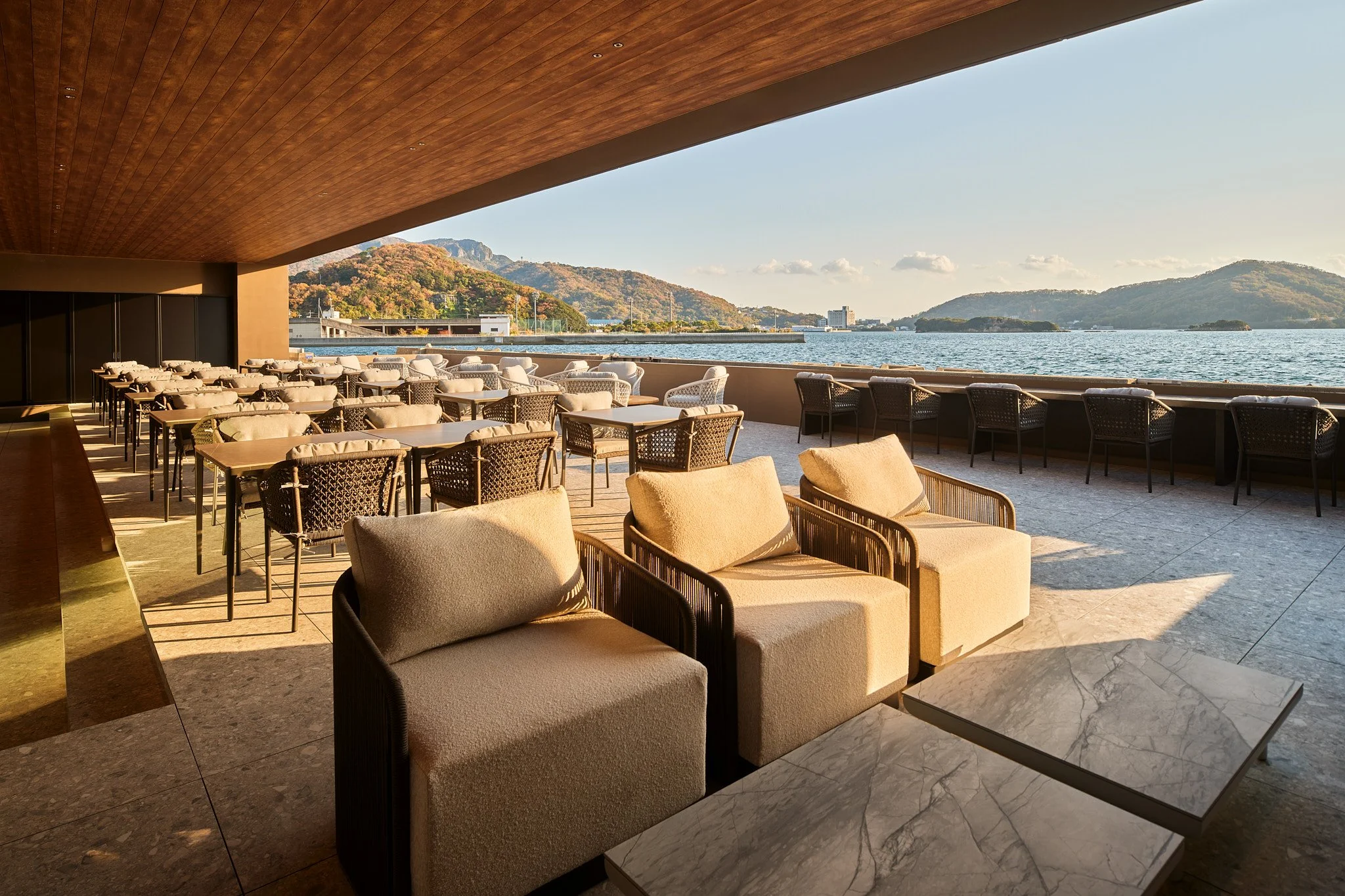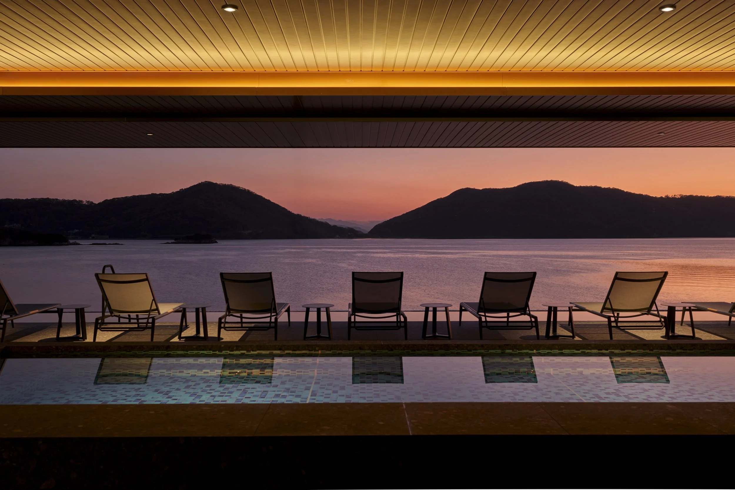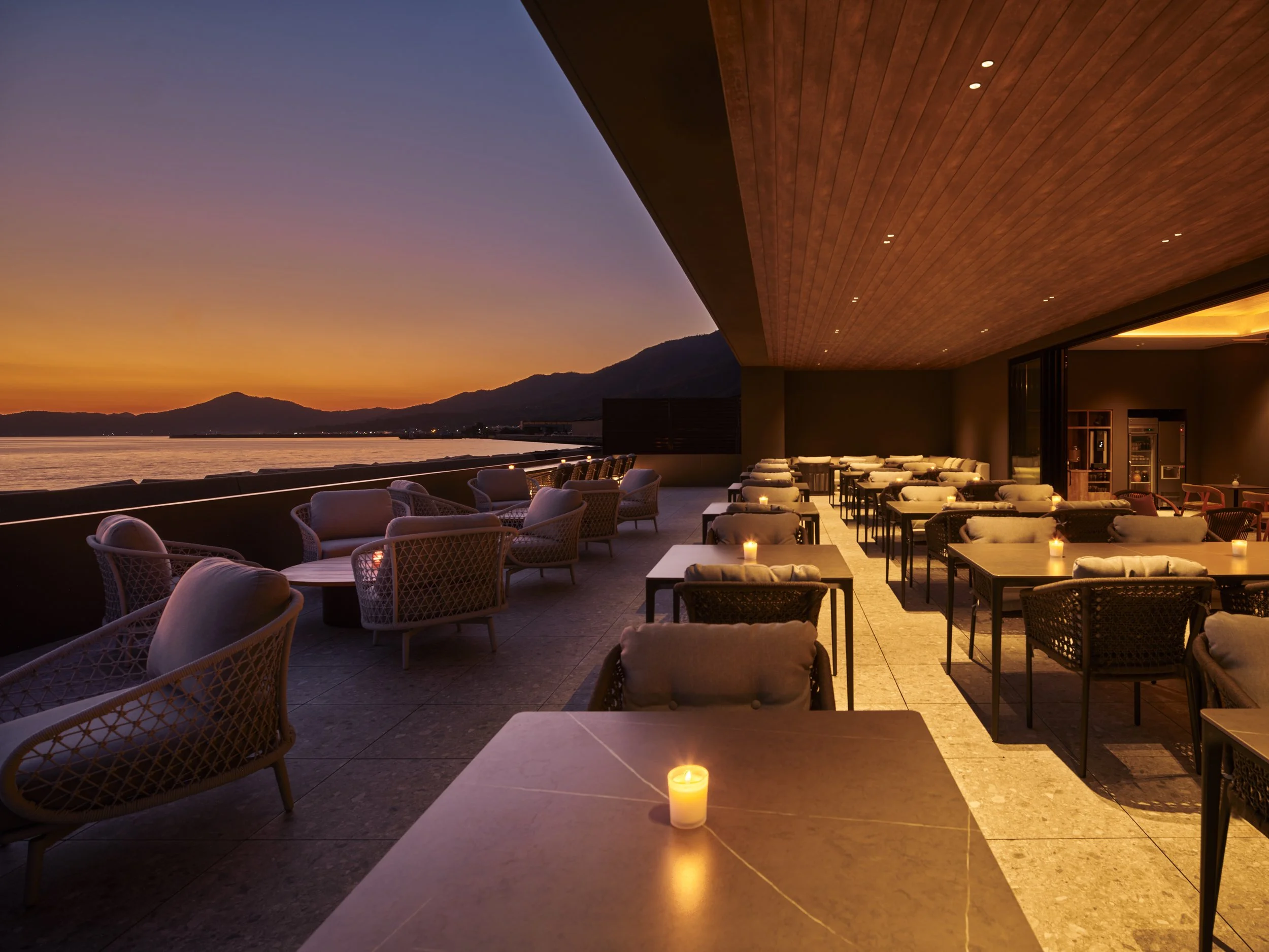 On Shodoshima, the objective was not to frame a singular landmark, but to embed the property within its surroundings. The design shifts toward a more tactile and organic expression using natural materials, warmer tones, and softer transitions between spaces to align with the island’s character.