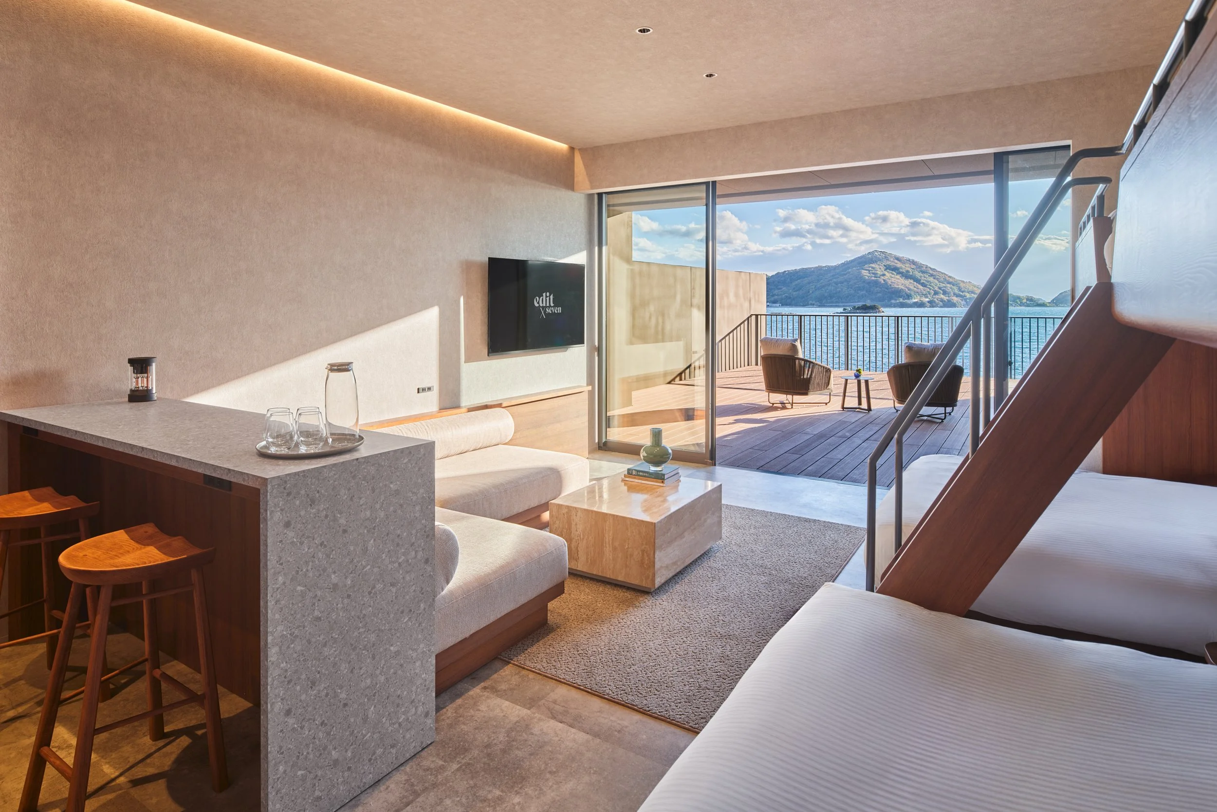 What differentiates Shodoshima is its emphasis on calm and duration. The property encourages longer stays and a slower rhythm, supported by in-room functionality and layouts that accommodate both privacy and extended use.